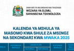 Mihula Ya Masomo 2025/2026 Awali, Msingi Na Sekondari