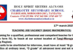 Nafasi za Kazi Ualimu Charlotte Secondary, March 2025