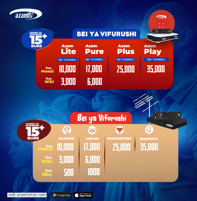 Kampuni ya Azam imetangaza mabadiliko katika vifurushi 2025, fahamu Bei za vifurushi vyetu vya Kisimbuzi cha Antenna na Dishi.