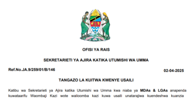 TANGAZO LA KUITWA KWENYE USAILI MDAs NA LGAs 02-04-2025