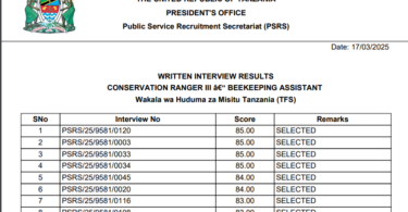 MATOKEO YA USAILI WA KUANDIKA ULIOFANYIKA TAREHE 15/03/2025