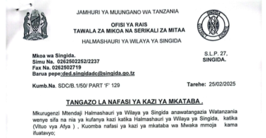 Nafasi za Kazi za Mkataba Halmashauri Singida 2025