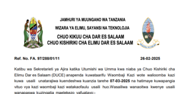 Majina ya Nyongeza Walioitwa Kwenye Usaili Chuo cha DUCE 2025