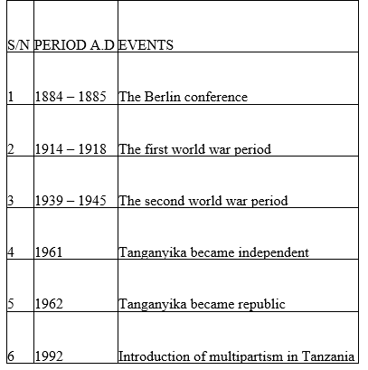 A period: is determined by one continuous event lasting for number of years. Example: Period of slave trade in East Africa, Period of long distance trade, Period of colonial rule in Africa.
