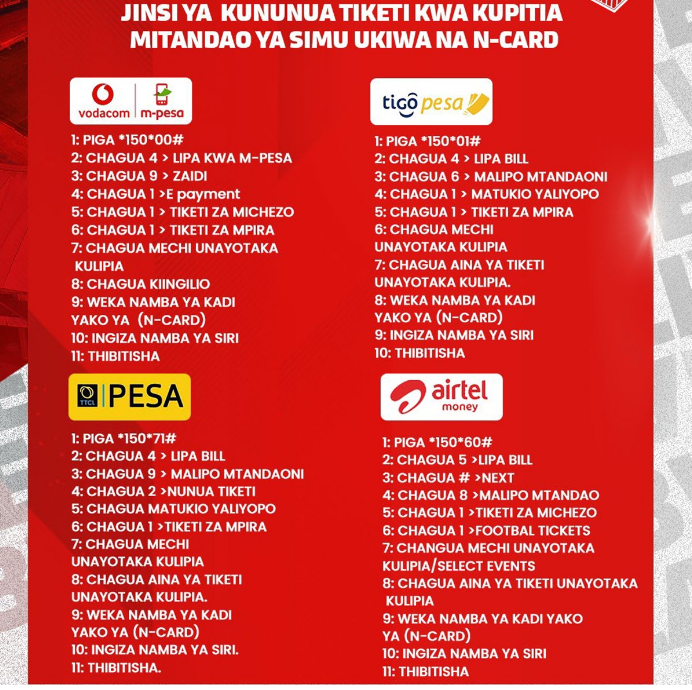 Zifuatazo ni hatua za Kununua Tiketi za Mpira kwa Airtel Money
