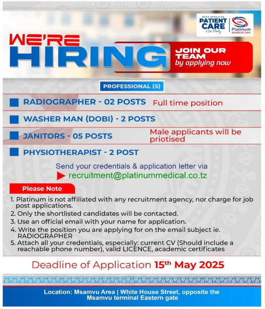 May 2025 Nafasi 11 za Kazi Platinum Medical Care
