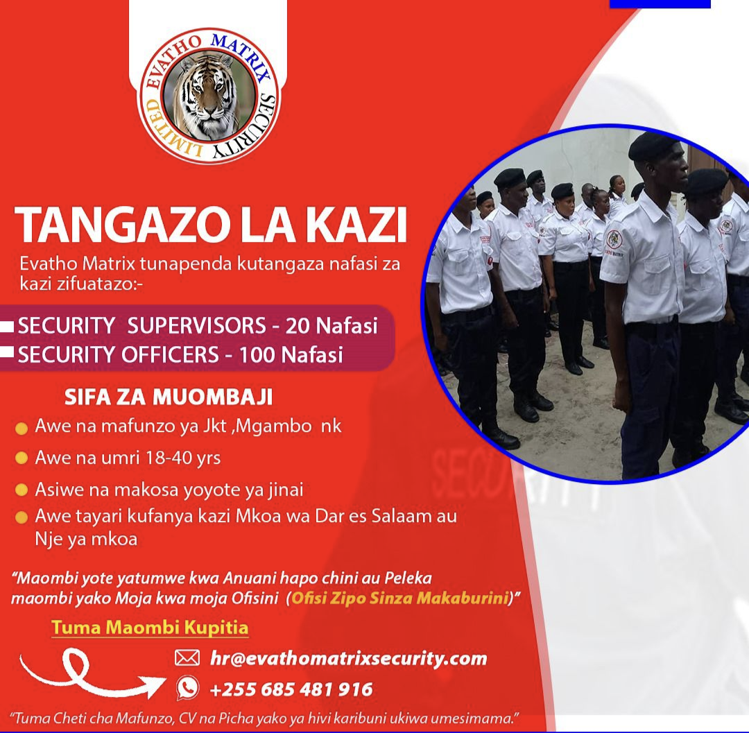 Nafasi 120 za Kazi Evatho Matrix Security 2025