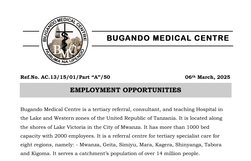 Nafasi 144 za kazi Bugando Medical Centre March 2025