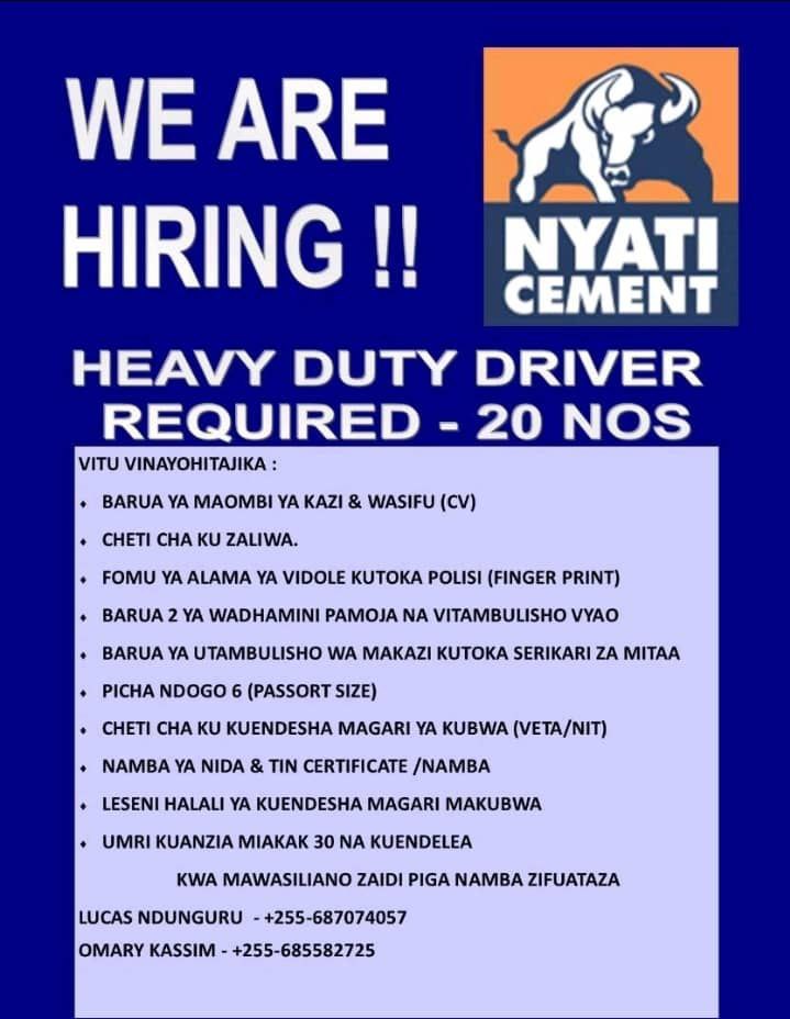 Nafasi 20 za Kazi Nyati Cement, March 2025