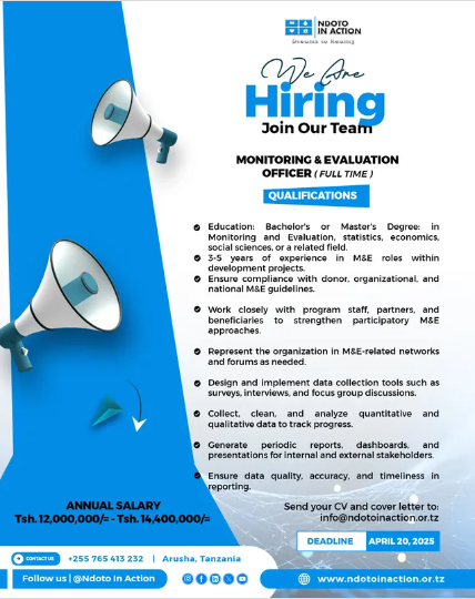 Nafasi 3 za Kazi Ndoto In Action April 2025