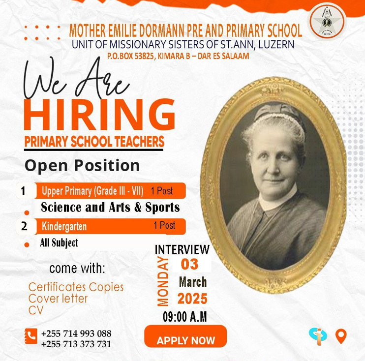 MOTHER EMILIE DORMANN PRE AND PRIMARY SCHOOL IS HIRING PRIMARY SCHOOL TEACHERS