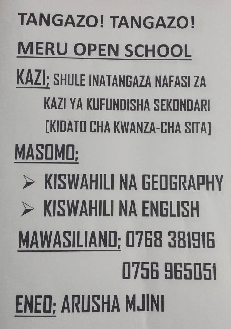 Nafasi za Kazi Ualimu Meru Open School 2025