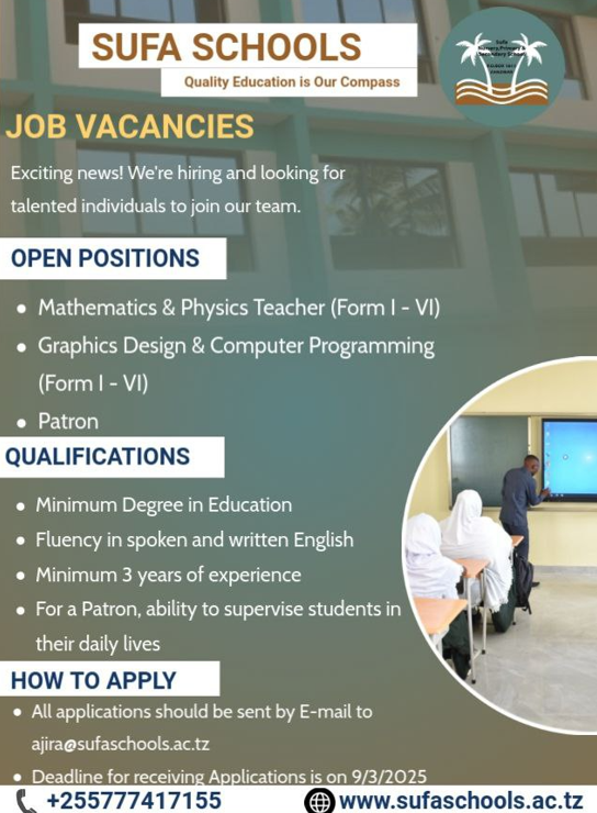 All applications should be sent by E-mail to ajira@sufaschools.ac.tz