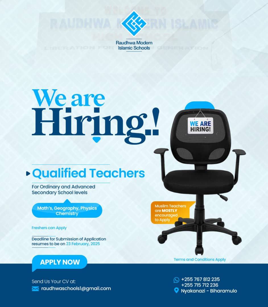 Send Us Your CV at: raudhwaschools1@gmail.com