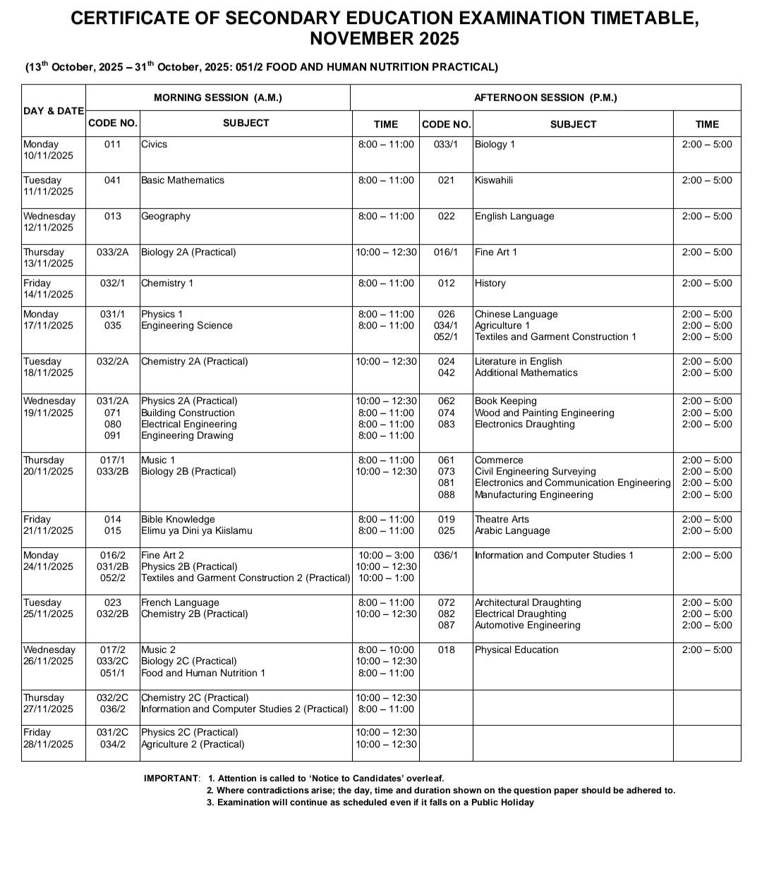 Baraza la Mitihani la Taifa (NECTA) limetangaza ratiba ya mtihani wa Taifa kidato cha nne 2025/2026, utakaofanyika kuanzia tarehe 10 Novemba hadi 28 Novemba 2024. Mtihani huu ni muhimu sana katika mfumo wa elimu wa Tanzania, kwani ndio unaotumika kutathmini kiwango cha ufaulu wa wanafunzi wa kidato cha nne na kuamua hatua zao zinazofuata katika masomo yao.