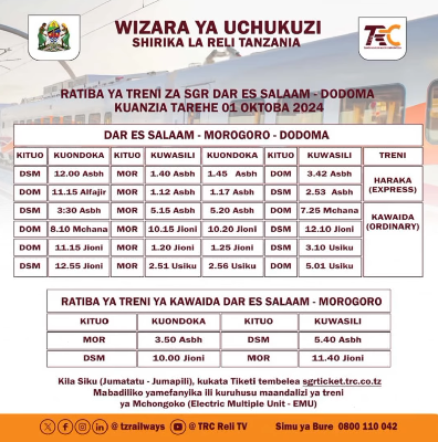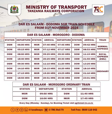 Ratiba ya Treni ya SGR Dar To Dodoma