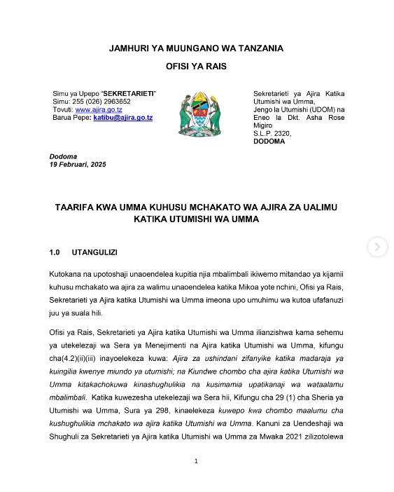 TAARIFA KWA UMMA KUHUSU MCHAKATO WA AJIRA ZA UALIMU KATIKA UTUMISHI WA UMMA